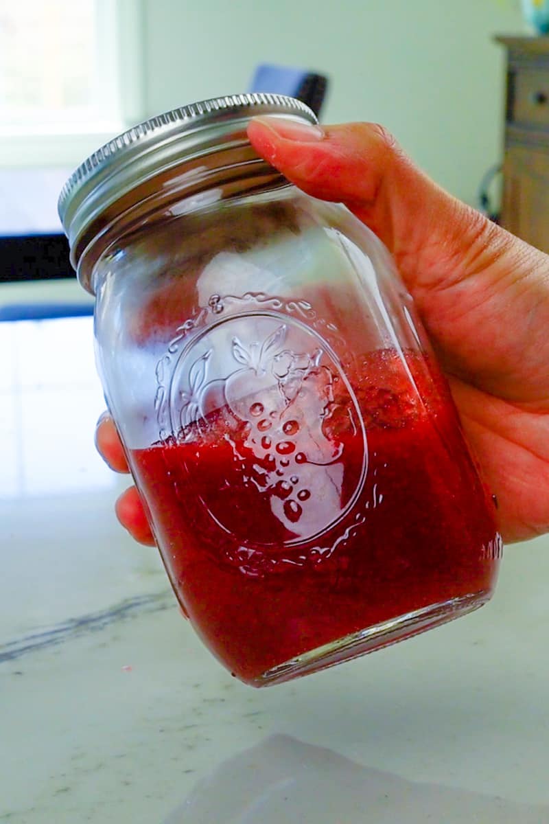 After making my strawberry puree recipe, if not using immediately, I will pour it into a glass container like a mason jar and store it in my fridge.